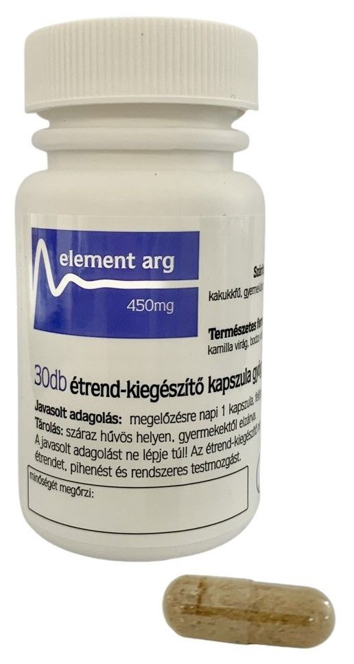 Element ARG 450mg étrend-kiegészítő kapszula gyógynövényekkel, argininnal és C vitaminnal.